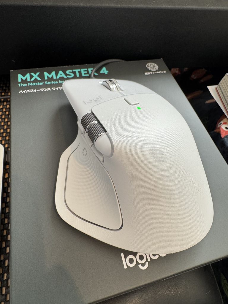 MX Master 4が発表になり、すぐに予約注文をしておいたMX Master 4が届きました。質感がすごくよくなっている。また今回から新機能で付いた、触覚フィードバックがとてもいい感じです。個人的にはサイドスクロールの位置をほんの少し前に出してくれると完璧なんですけどね。でもとても満足しています。
