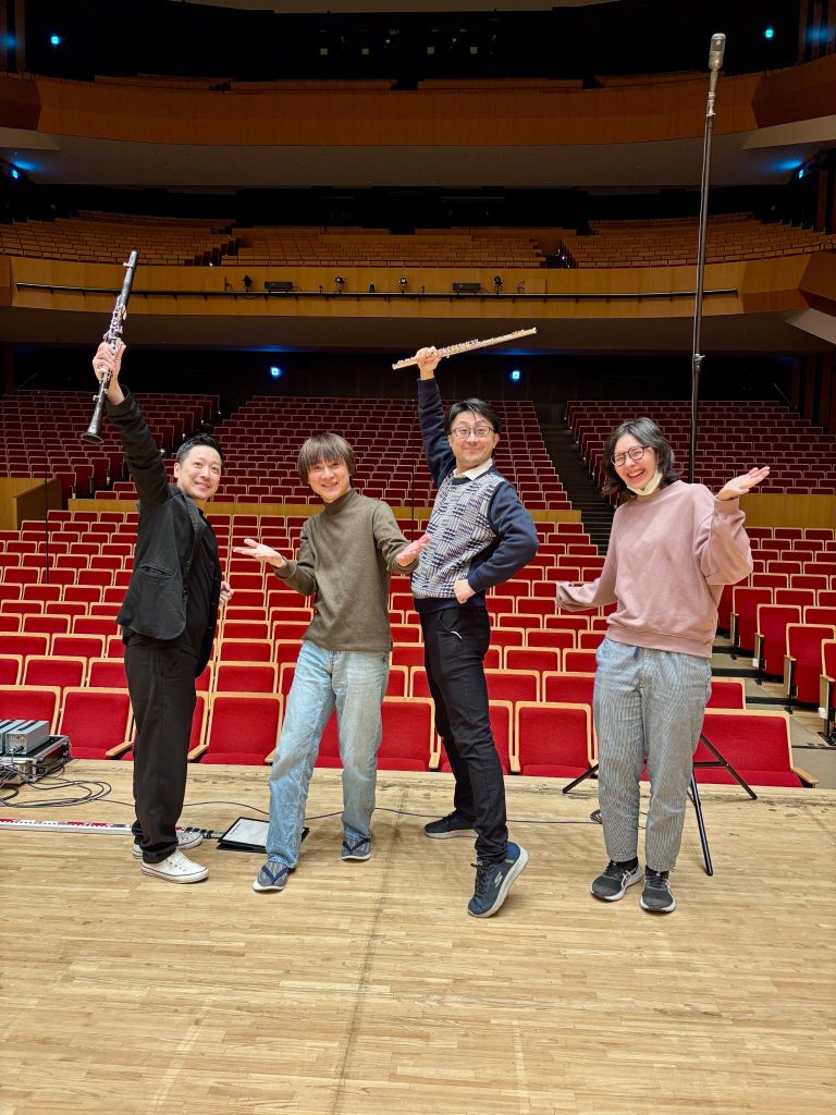 Micchan 2026年1月6日 昨日に続き今日はStringsの6型とソロ系を録音、そしてそのあとは木管の皆さんと楽しいレコーディング。昨年はあまり会えなかったので色々とお話出来て楽しかった。 ちくわの多久ちゃんとクラリネットの中さん。 ← Recording 1st day Recording 3rd day →