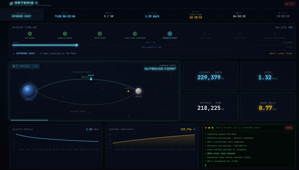 NASAのARTEMIS計画がリアルタイムでみれるサイト。秒速1.32 km/sって凄い。1hに直すと3600×1.32kmだから4752 km/h。一日で114,048km進めます。月まで約38万kmとすると3日間とちょっと。今日は2日目なので明日には到着するのかな?楽しみだなー。そう考えると50年も前に本当に人類は月に降り立ったのだろうか? という疑問が出てきますよね。これは何度も議論されて現在は「行った」、という意見が大半だけど、当時ファミコン以下のコンピュータで軌道計算や宇宙船をコントロールするプログラムなど組めらのだろうか? レイテンシー的にも厳しいと思うし、またロケットの素材、エンジン、電波の技術なんかを考えて個人的には今の技術ですらなかなか難しいのに・・・と思ってしまいます。でも夢があっていいですね。今はOutbound Coast(エンジンを使わずに惰性飛行で地球から離れているという意味)というミッションですね。